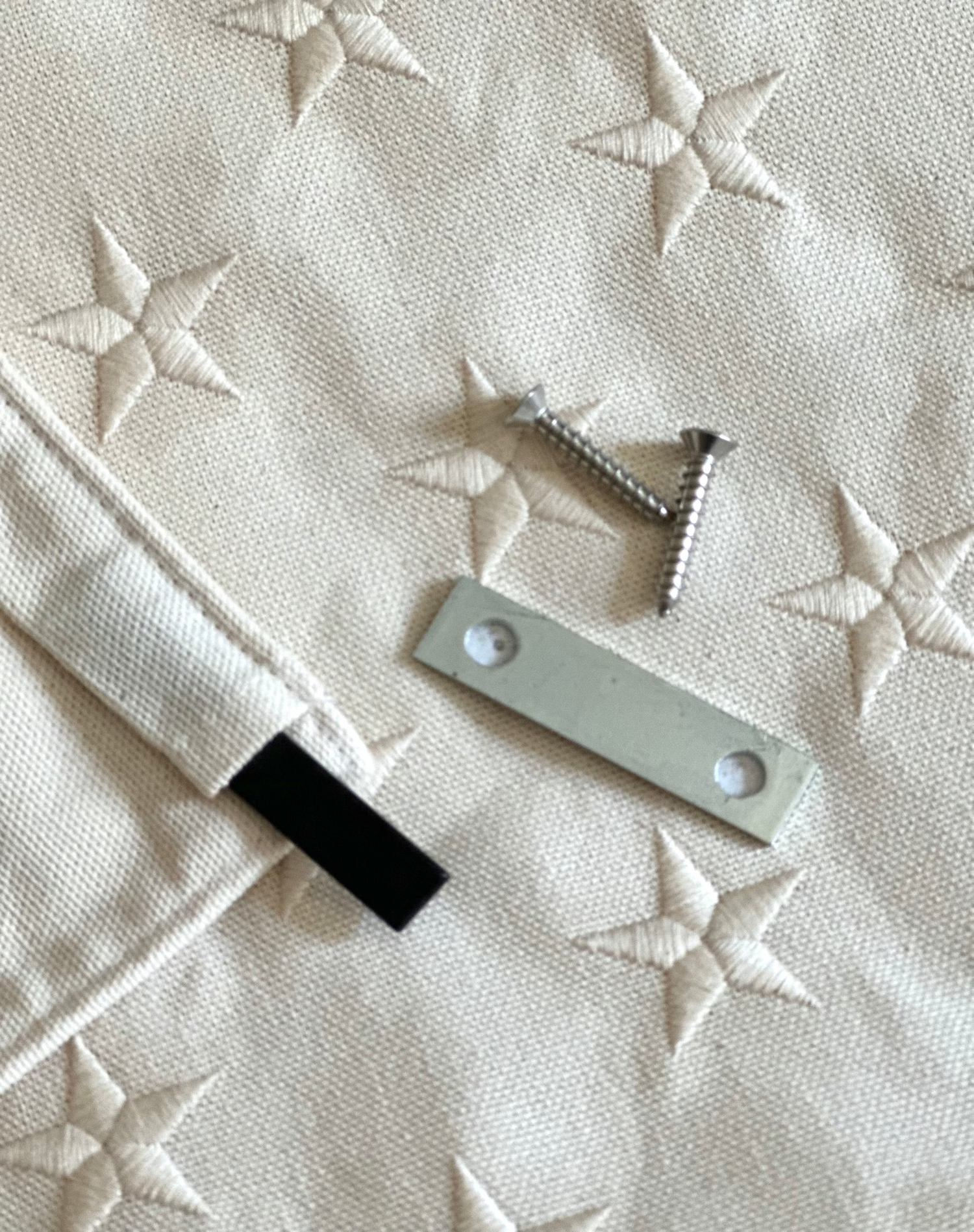 Our flags feature small pockets on the back to hold magnets, paired with a metal wall mount bracket, allowing a seamless and simple way to framelessly hang your piece.
